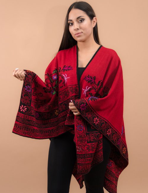Ruanas en fibra de alpaca 100%, diseño enredadera de diversas flores bordadas a mano, esta ruana es reversible una en fondo rojo y de fondo negro que le dan un estilo único e ideal para época de otoño e invierno.